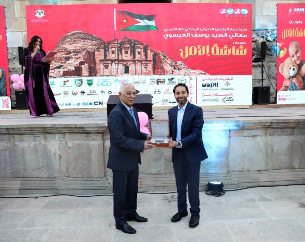 عمّان –31 تشرين الأول 2025 رعى رئيس الديوان الملكي الهاشمي يوسف حسن العيسوي، اليوم الجمعة، على مسرح الأوديون في وسط العاصمة عمّان، انطلاق فعاليات مبادرة “شاشة أمل” الإنسانية التي تنظمها مؤسسة حرير للتنمية المجتمعية، والموجهة للأطفال المرضى والأيتام واللاجئين في مختلف محافظات المملكة وأبناء غزة المقمين في الأردن، وتستمر على مدار يومين.