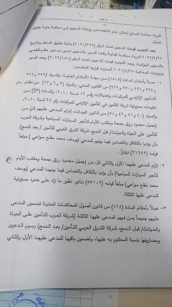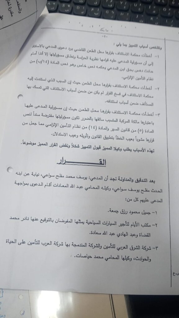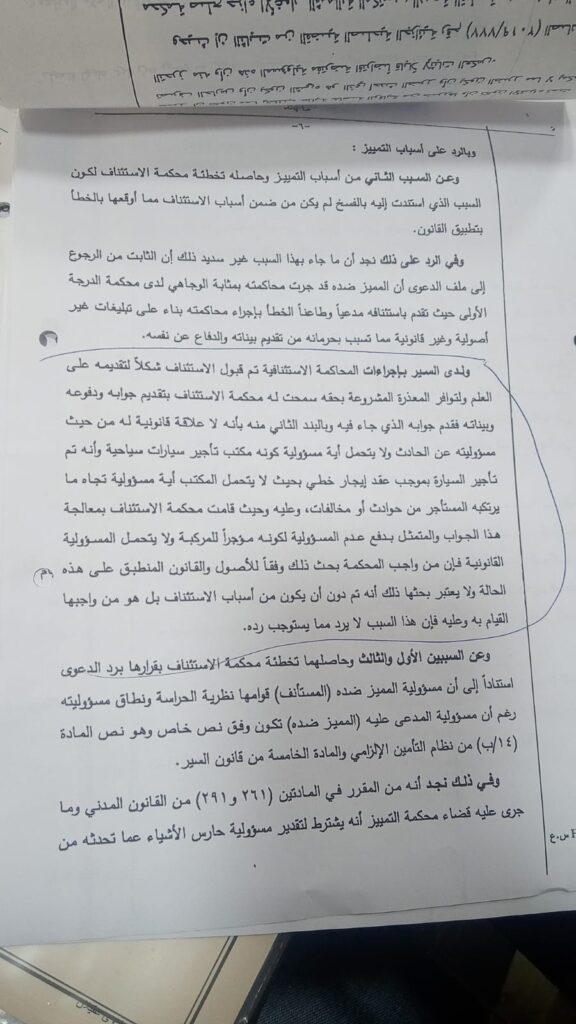 وفي هذا الإطار، سُجّل انتصار قضائي نوعي لصالح قطاع تأجير السيارات في قضايا المسؤولية المدنية، حيث صدرت قرارات قضائية لصالح مكاتب ومحاميها على النحو التالي: