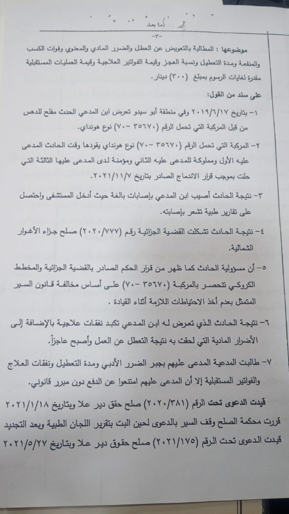 - مكتب الأيام لتأجير السيارات: ممثلاً بيوسف الشيخ ووكيله المحامي محمد جرار، بعد كسب قضية المسؤولية المدنية أمام محكمة الاستئناف، وإيداعها لدى محكمة التمييز وكسبها لصالح مكتب التأجير.