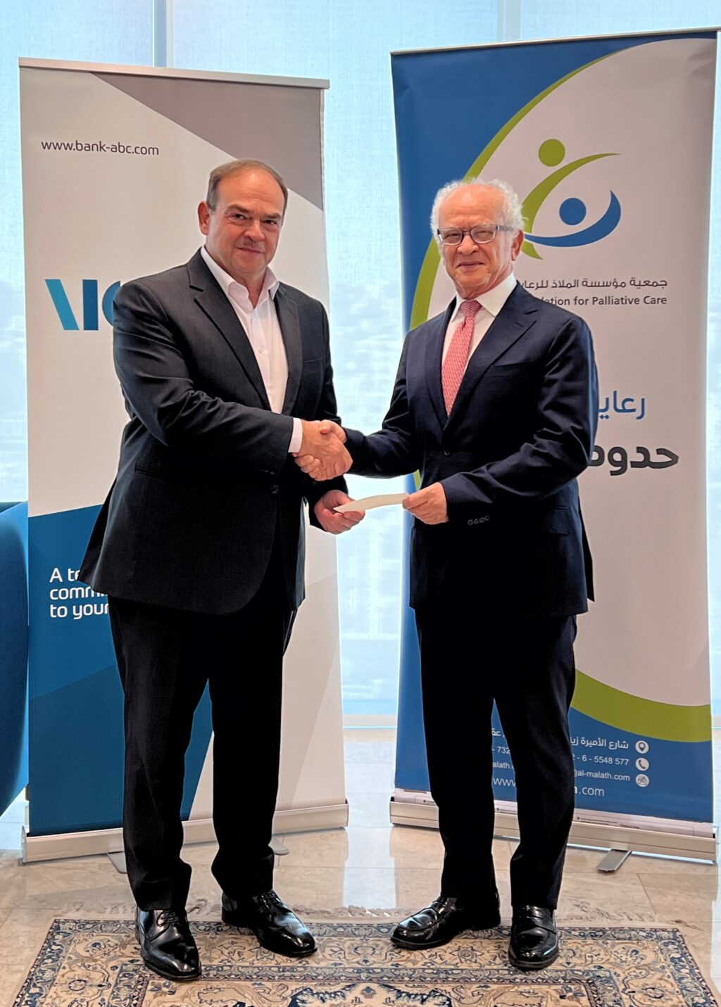 واصل بنك ABC في الأردن تقديم الدعم لجمعية مؤسسة الملاذ للرعاية التلطيفية للمساهمة في دعم أنشطة وأهداف الجمعية بهدف تلبية حاجات إنسانية مهمة وتقديم الرعاية التلطيفية للمرضى الذين يعانون من أمراض مستعصية غير قابلة للعلاج.