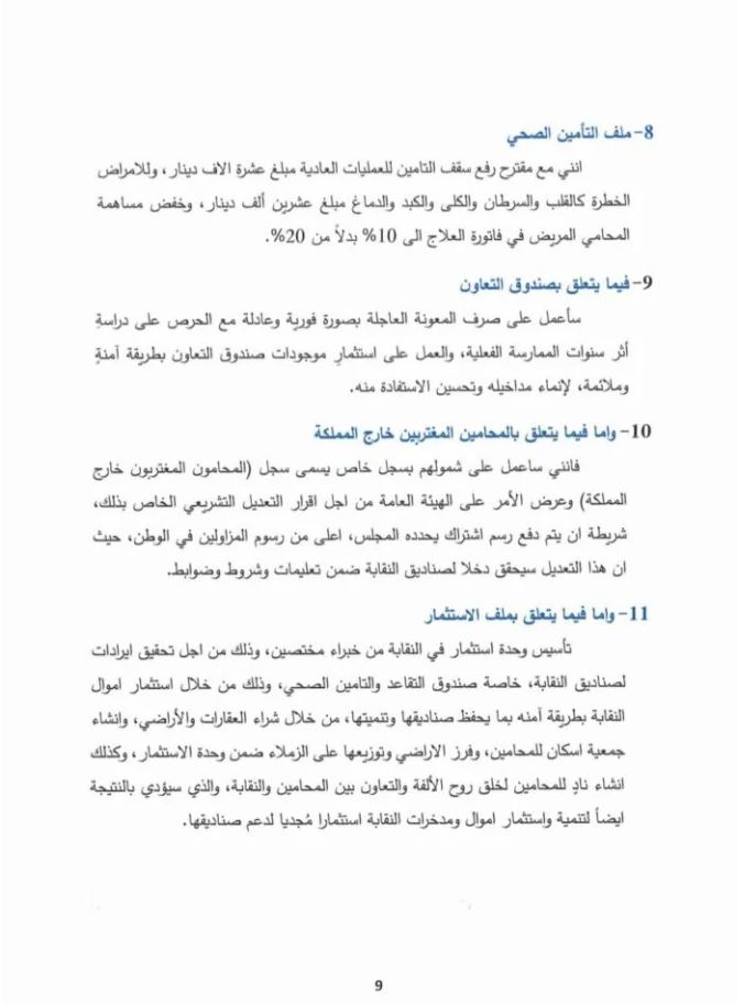 ويبرز البرنامج الانتخابي الحفاظ على حقوق الزملاء من منتسبي النقابة.